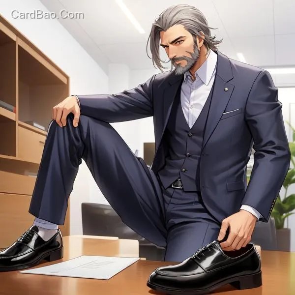 上班族大叔,颓废,帅哥,中年人,西装革履,手持步枪,花白长发,壮实,胡子拉碴。
