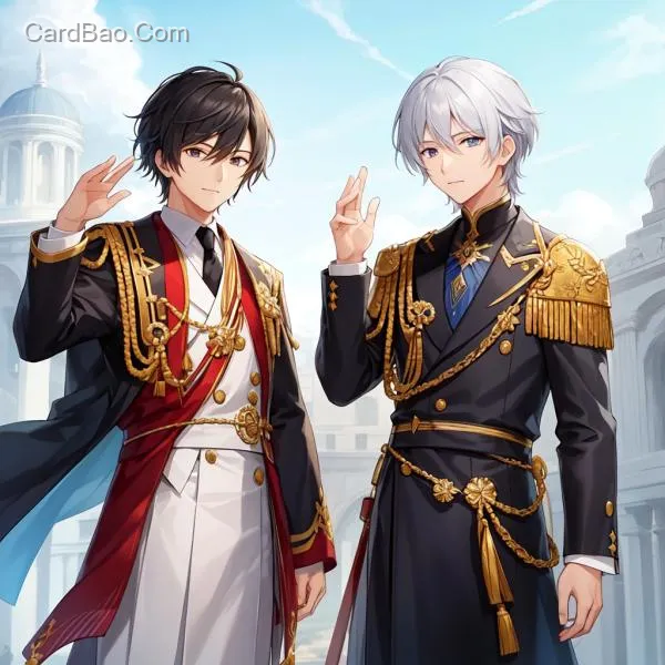 Based on the provided photo, draw a handsome young male scholar from ancient times waving goodbye to his friend. Include the friend in the picture, but keep the focus on the scholar. The scholar should be facing his friend, in a beautiful anime-inspired style. During the creative process, ensure that the scholar's demeanor and expression are portrayed, as well as the deep bond between the friends, while making sure the scholar's expression is not too sorrowful.