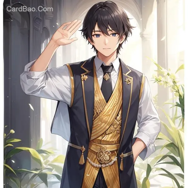 请根据提供的照片,画一名古代的英俊的少年男书生在和他的朋友挥手告别,画面中画出他的朋友,但仍以他为主,书生面对他的朋友,唯美二次元风格。在创作过程中,请确保表现出书生的气质和神态,以及朋友之间的深厚情谊,而且书生的表情不要太悲伤。