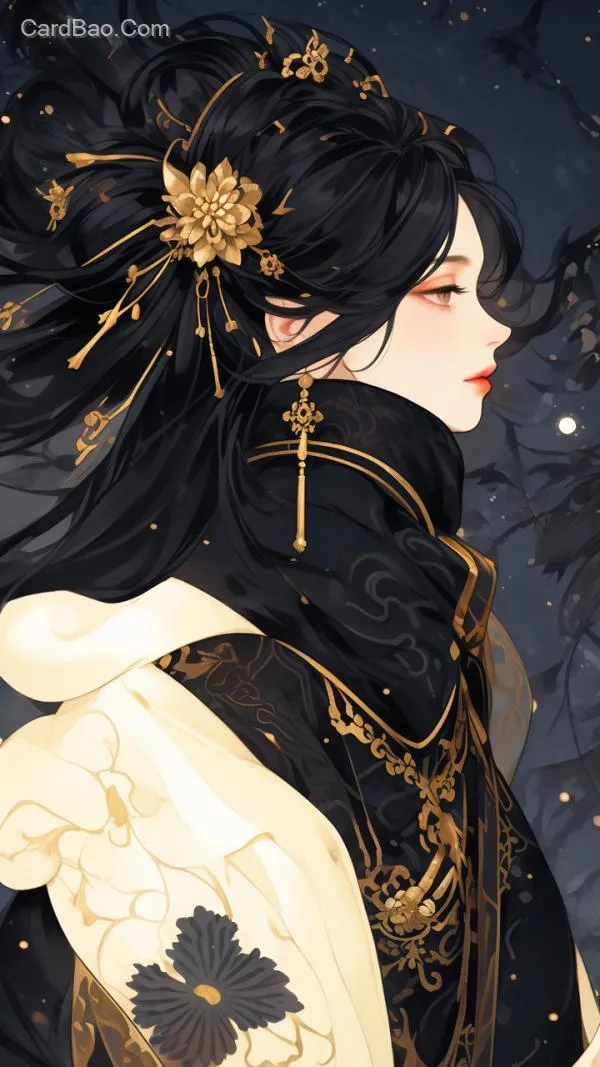 Black-haired beauty, Chinese anime, black and white, watercolor