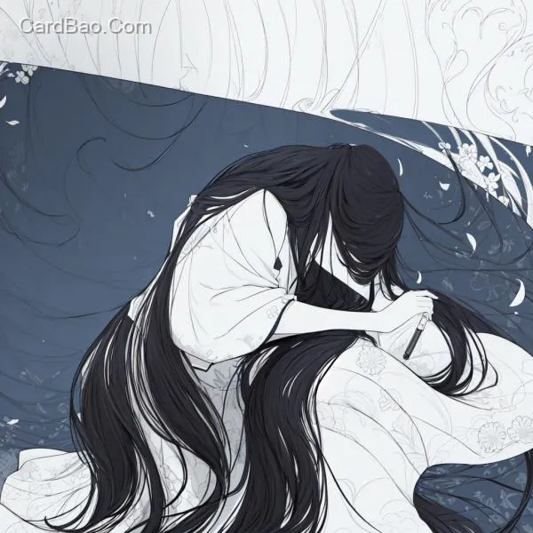 手绘风,极简,头像,宝蓝色背景,白色的人物剪影,卡通,少女侧脸,大波浪长卷发,线条