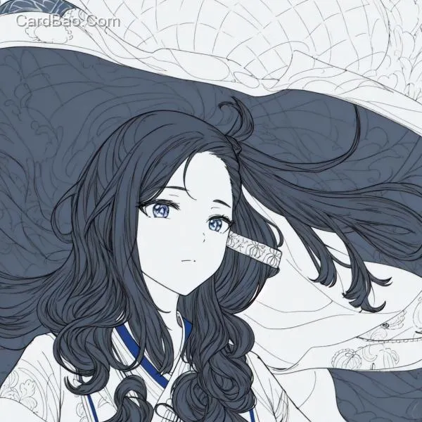 手绘风,极简,头像,宝蓝色背景,白色的人物剪影,卡通,少女侧脸,大波浪长卷发,线条