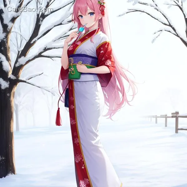 Draw the object from the reference image as a New Year greeting meme, holding a blank spring couplet in hand, with a festive atmosphere of the New Year. The reference object is wearing New Year attire primarily in a bright red color.