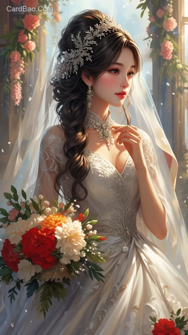 最美丽的新娘子婚纱和帅气的军人新郎,背景是浪漫的场景!