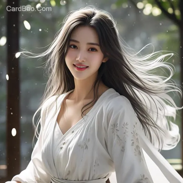 白色衣服, 美女, 长发, 直发, 灵气, 全身, 微笑, 4K