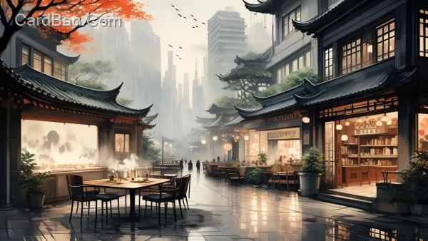 Architectural exterior design: the first floor is a coffee shop with outdoor seating, the second floor is a booth area with a terrace, featuring a futuristic Chinese style, with a creative and futuristic appearance.