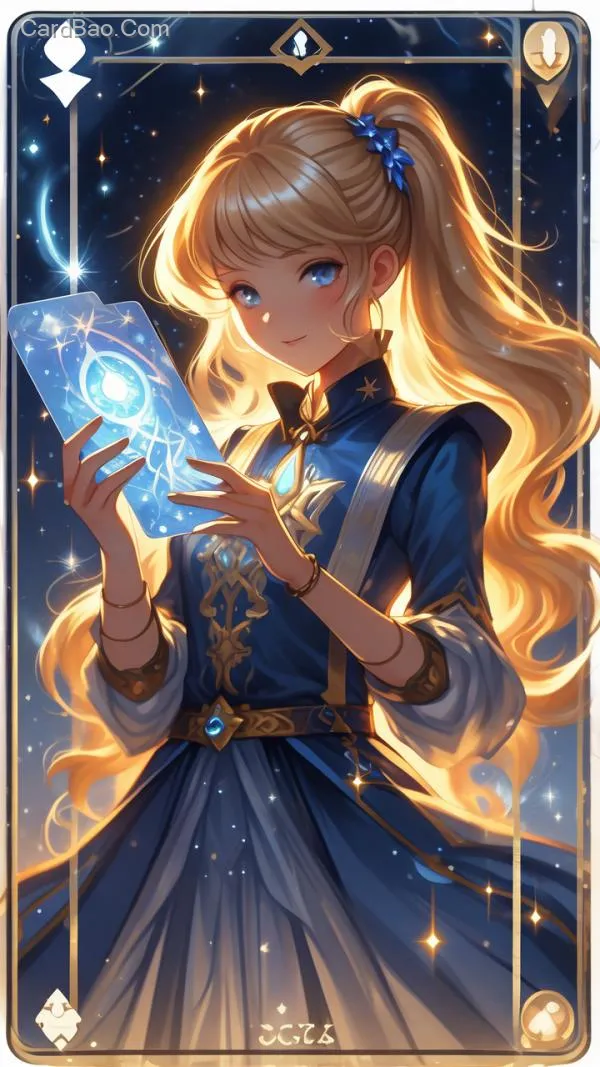 魔法卡牌,炫丽光芒,金色双马尾,蓝色瞳