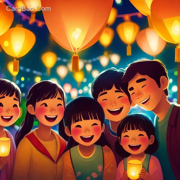 The camera zooms in on the brilliantly lit Lantern Festival night, using bright, lively, and vibrant colors to depict the festive scene. In the image, colorful lanterns hang high, families gather together, children’s faces beam with joy, and the elderly radiate warmth and kindness. The artist captures moments of happiness with dynamic brushstrokes, highlighting the festive elements in the clothing. Fireworks burst brilliantly in the night sky, while the ground glimmers with the scattered remnants of firecrackers. The overall style is cheerful, with vivid colors and playful light and shadow, immersing the viewer in the lively and joyous atmosphere of the Lantern Festival.