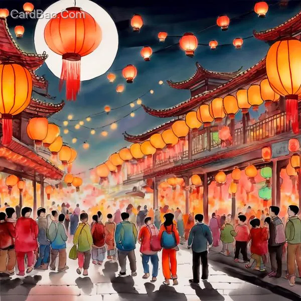 Under the full moon, the streets are brilliantly lit with colorful lanterns, casting a festive and lively glow. Families gather together, sharing laughter and joy, while children play and elders look on with kindness, painting a warm and harmonious picture of the Lantern Festival. Dressed in red, people either admire the lanterns and solve riddles or savor steaming sweet rice balls, indulging in the sweetness and warmth of the holiday. Not far away, dragon and lion dance troupes perform with majestic energy, earning rounds of applause. In the night sky, fireworks burst into brilliant, dreamlike displays of color, carrying people’s hopes and wishes for the future. The ground is scattered with firecracker remnants, marking the joy and celebration of the festival and forming a vivid, detailed scene of Lantern Festival festivities.
