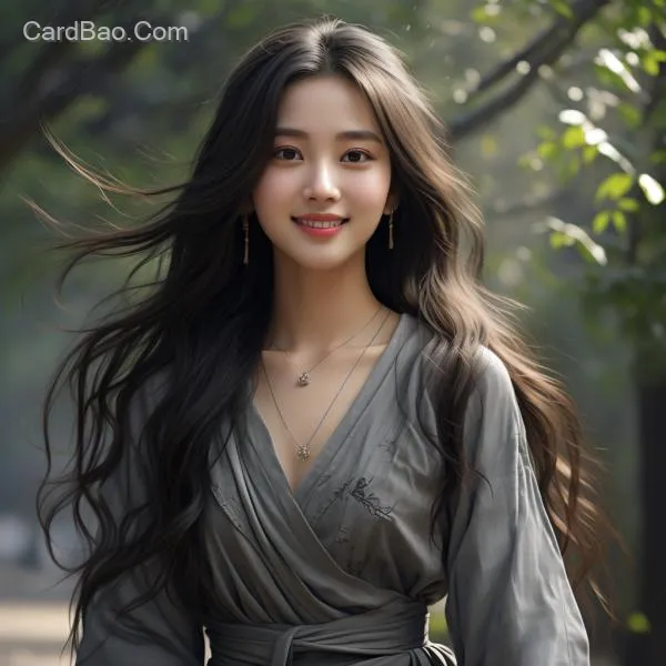 Dark gray clothing, beautiful woman, long hair, straight hair, ethereal aura, full body, smiling, 4K