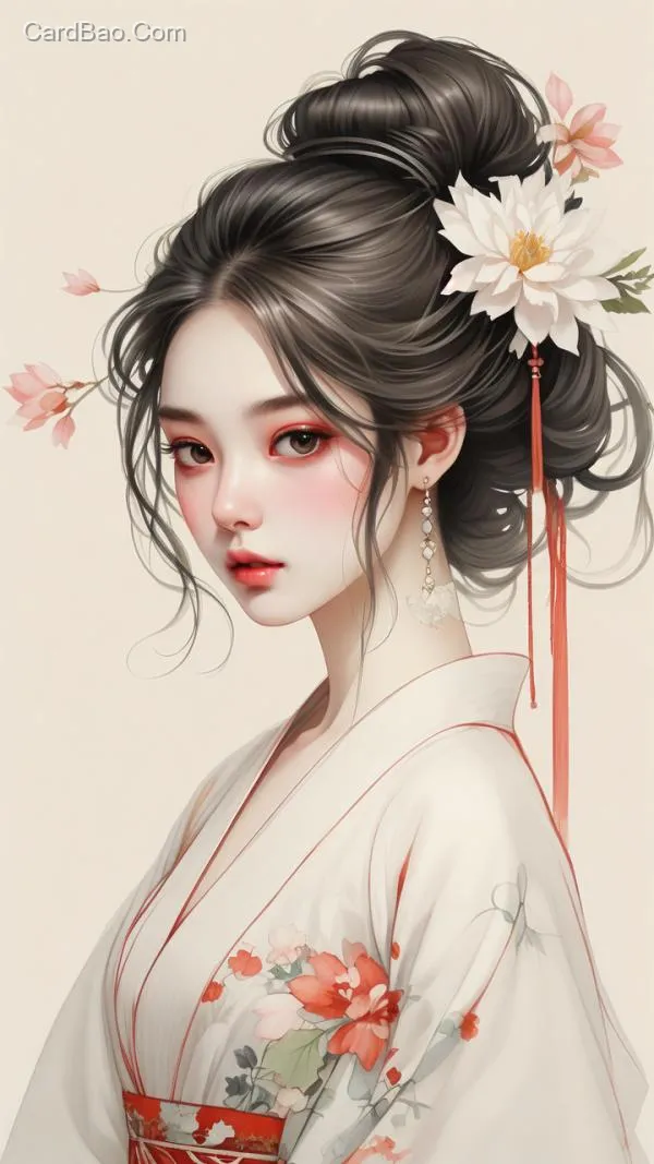Oriental beauty avatar, elegance that outshines the past and present, lotus flowers shy before her jade-like features, simple cartoon style.