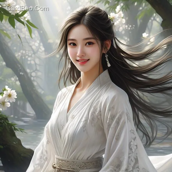 白色衣服, 美女, 长发, 直发, 灵气, 全身, 微笑, 4K
