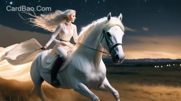 夜晚的原野上,一个姑娘骑着一匹白马飞奔而来。