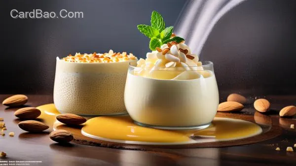 美食展示,牛奶布丁,杏仁,商业广告摄影,高清晰