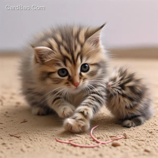 Cute Feng Shui Pink Pet, Super Adorable Kitten Playing with an Old Mouse.