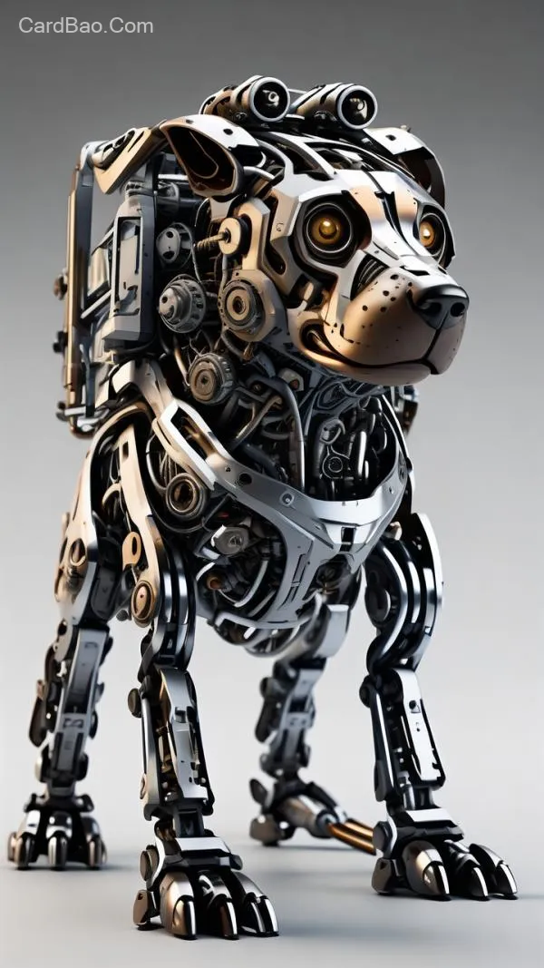Mechanical dog, high-tech feel, mechanical style, top-down view, premium, 4K, Octane render, hyper-realistic