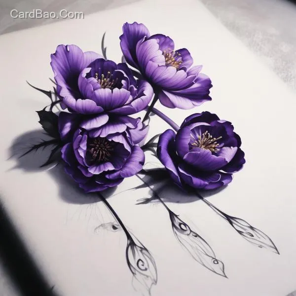 A fine brushwork painting on the table depicts a violet flower ring, exquisitely beautiful.