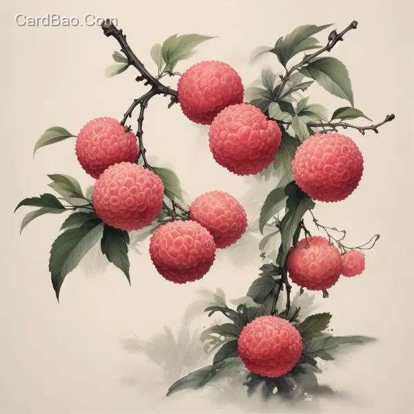 Ink wash painting, lychee, Lingnan, color blending, antiquing, silk scroll.