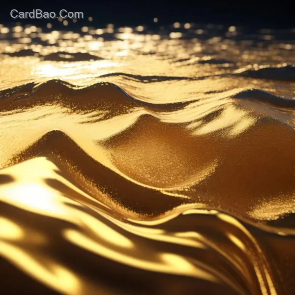 Golden liquid ocean surface with golden patterns, fluid texture, e-commerce sci-fi background, shimmering light, ultra-high definition, octane rating, cinematic rendering, technological feel, futuristic vibe, light effect rendering, lighting and shadow effects, particle rendering, realism.