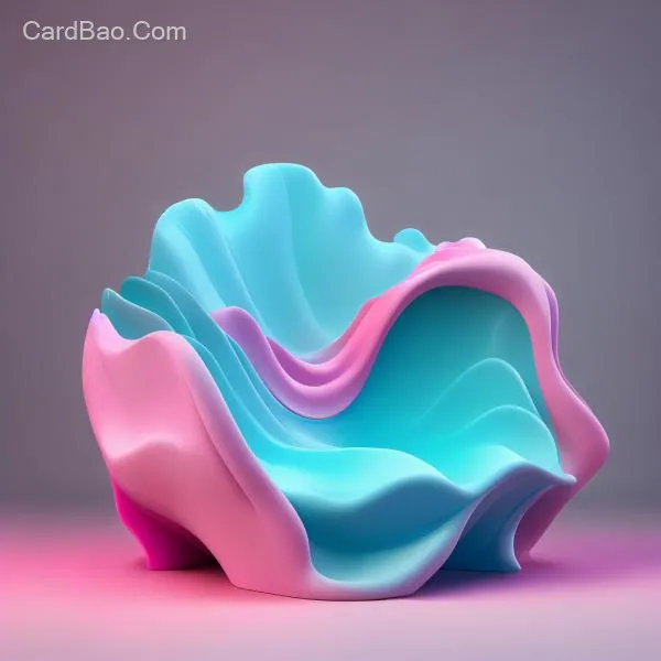 Blue and pink gradient fluid stool, 3D rendered ocean, flowing art, realistic style