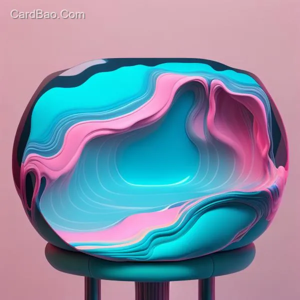 Blue-pink gradient fluid stool, 3D rendered ocean, flowing art, realistic style