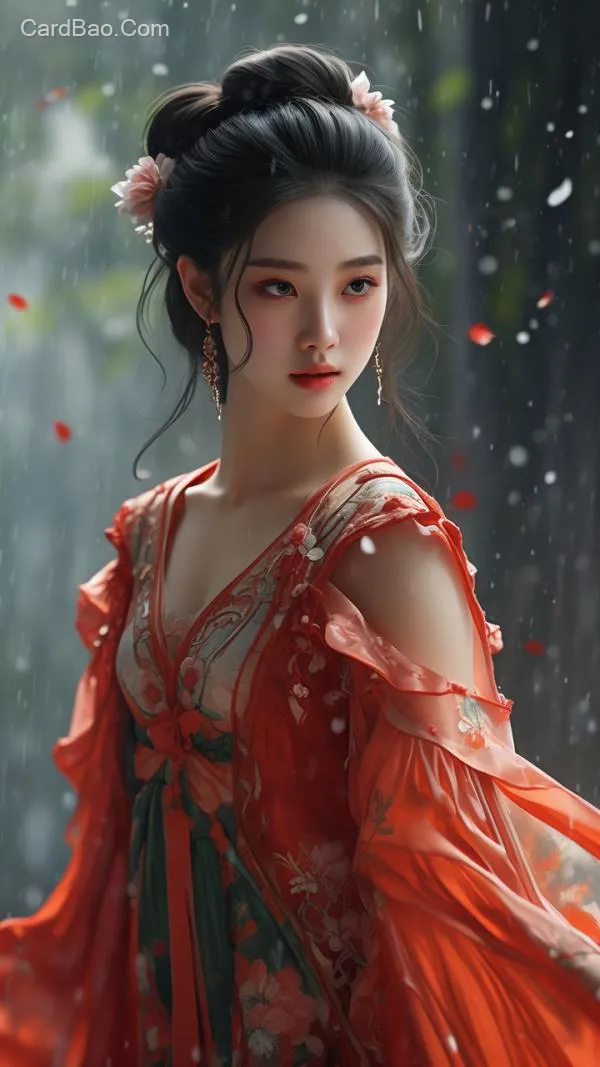 倾国倾城的绝世美女,完美面容,大眼睛,国潮,全身,古风长裙,仙女,面部干净,近距离摄影,4K超高分辨率,质感细腻