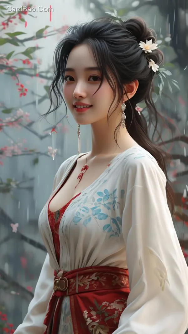 High-waisted jeans on a beautiful woman, with a mature and sophisticated aura, ethereal and elegant, fresh and refined, with a curvaceous and well-proportioned figure, 3D rendering, CG style, fair skin, smiling, ultra-high resolution, and delicate texture.