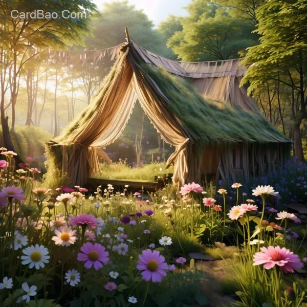 Light Veils Amidst Grass Sheds, Wild Flowers Sway in Joy