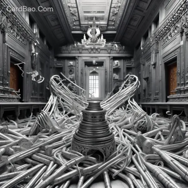 Everywhere is covered with silver threads, inside the ancient mansion.
