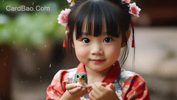 小姑娘的手上捧着一只小鸟