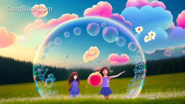 A pure maiden holding a flower basket, with fluttering petals like little colorful clouds.