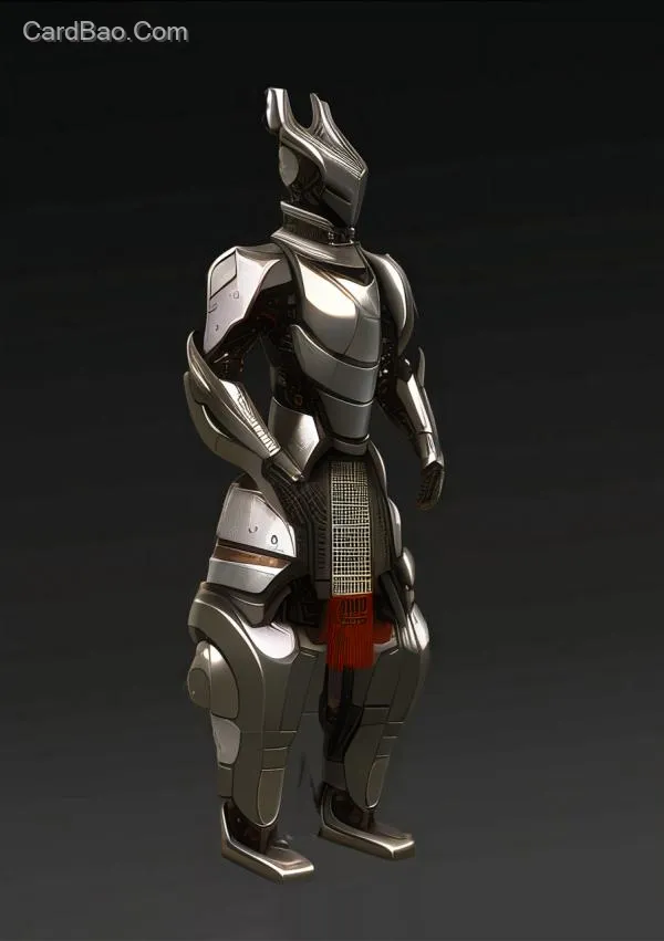 未来风格,穿着铠甲 ,金属光泽,身上有国潮元素,全景构图,高清,远视角,8k高清,手绘风格 丁达尔效应 背后金色光环装饰