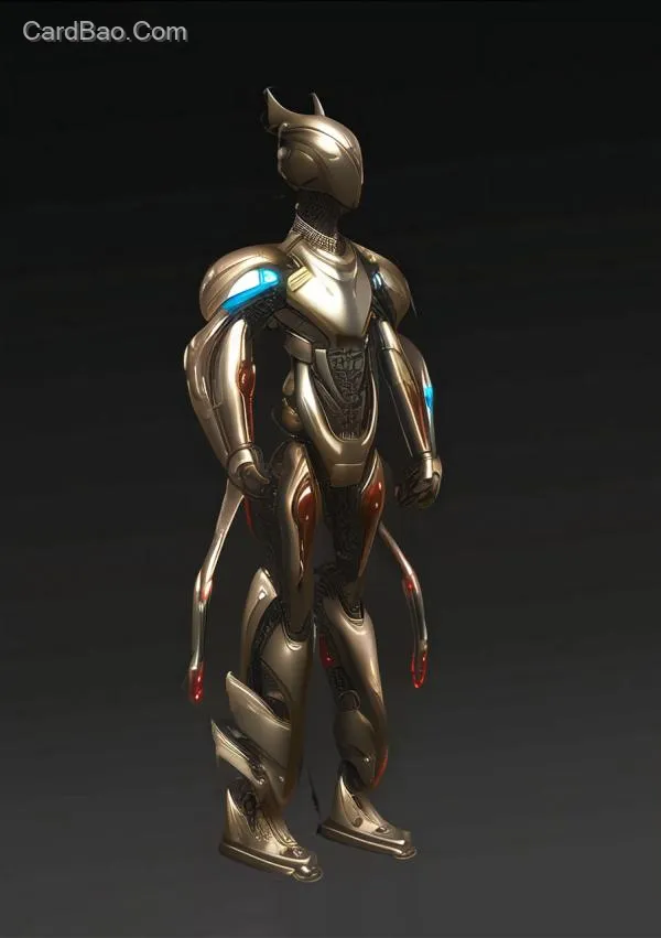 未来风格,穿着铠甲 ,金属光泽,身上有国潮元素,全景构图,高清,远视角,8k高清,手绘风格 丁达尔效应 背后金色光环装饰