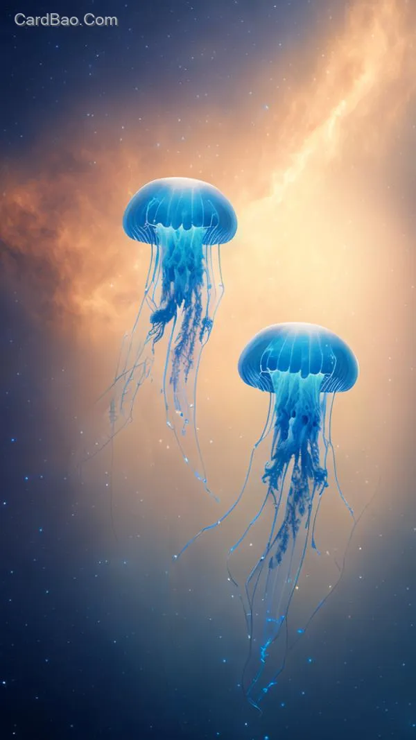 在涂抹区域外增加一些小型水母,梦幻,科幻,超现实风格