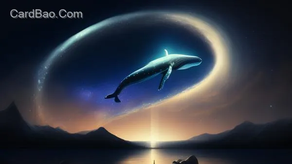 As night falls, the once crystal-clear Whispering Bay is draped with a curtain of twinkling stars, revealing a tranquility distinct from the day. The dark whales gliding slowly through the sky seem to have entered another boundless ocean, weaving among the countless stars and dancing with the bright moon.
