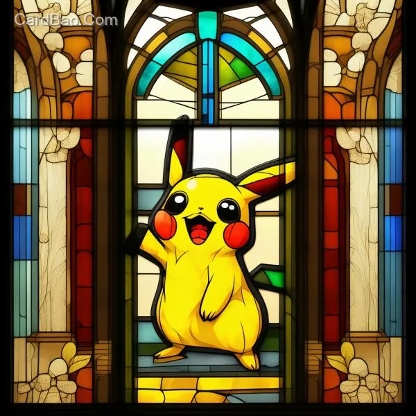 皮卡丘的形象进行教堂彩色玻璃风格化,形成教堂玻璃窗的效果