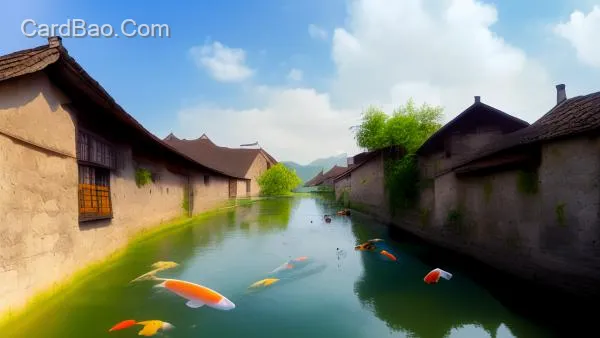 In the ancient village's river channel, the water is crystal clear, teeming with beautiful carp swimming freely and leisurely.