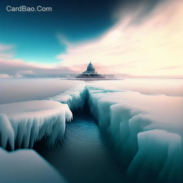 冰封的海面,远景有被冻结的大浪,画面壮观,广角镜头,电影质感