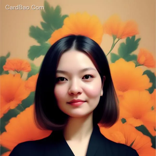 基于左侧的人物形象,将背景改变为右侧图片橙色以及鲜花的背景,谢谢