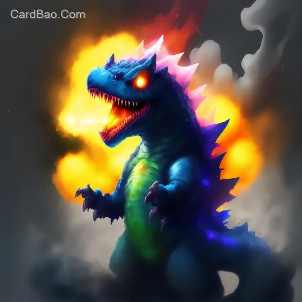 Q版哥斯拉怪兽 背部荆棘 炫酷爆炸背景 头朝向天空喷火