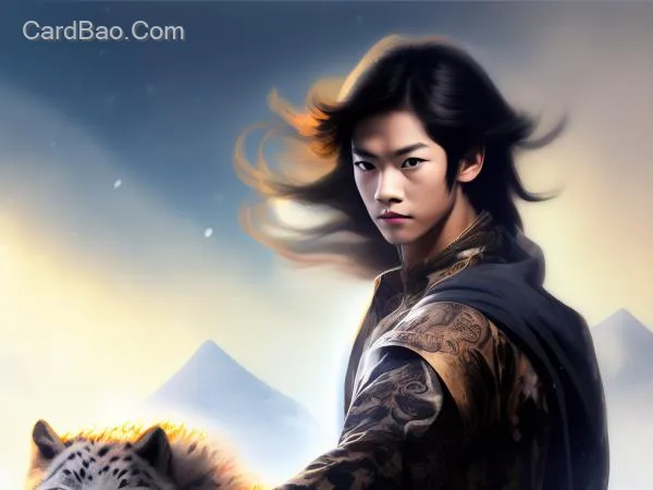 Use a stacked image as the background, and add a snow leopard and a wolf on either side of the character.