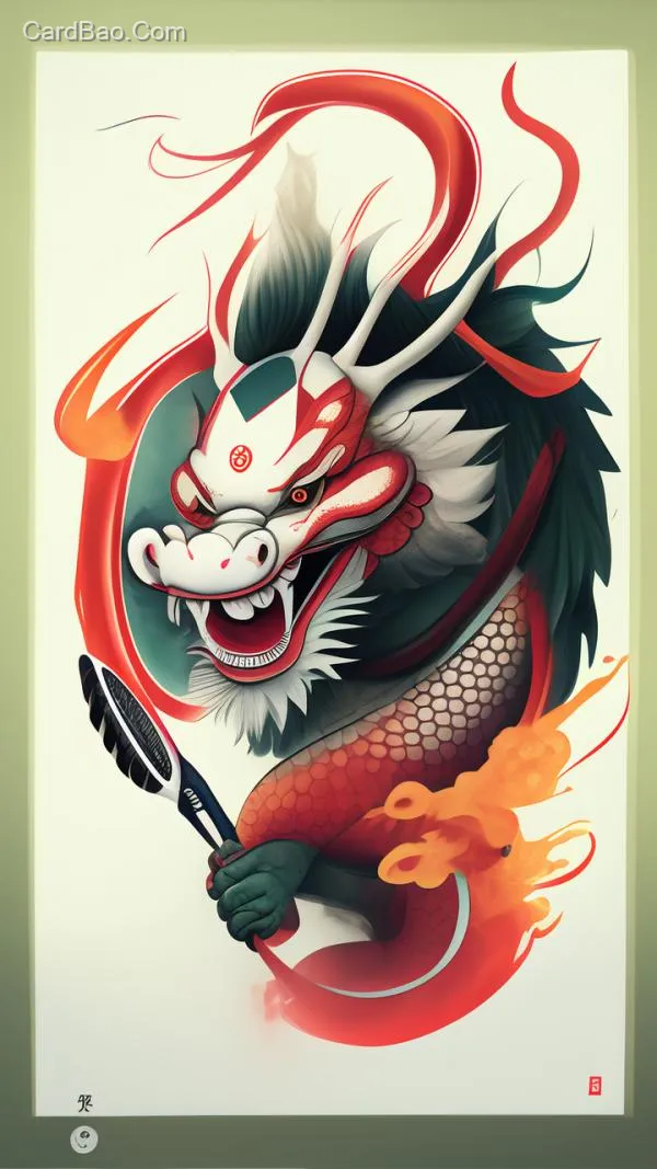 A Chinese dragon holding a tennis racket, celebrating the Spring Festival.