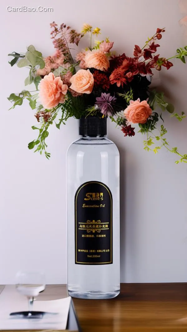 Table, warm-colored wall, with fresh flowers placed on the table.