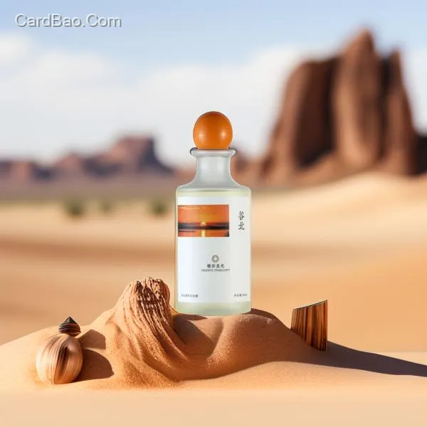 有块木头承托着产品,美丽沙漠背景