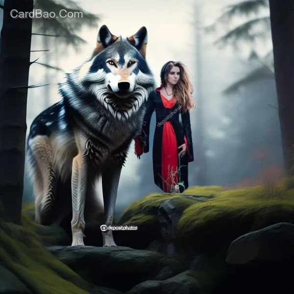 Girl, European and American cinematic synthesis style, forest, wolf, detailed depiction, full moon.