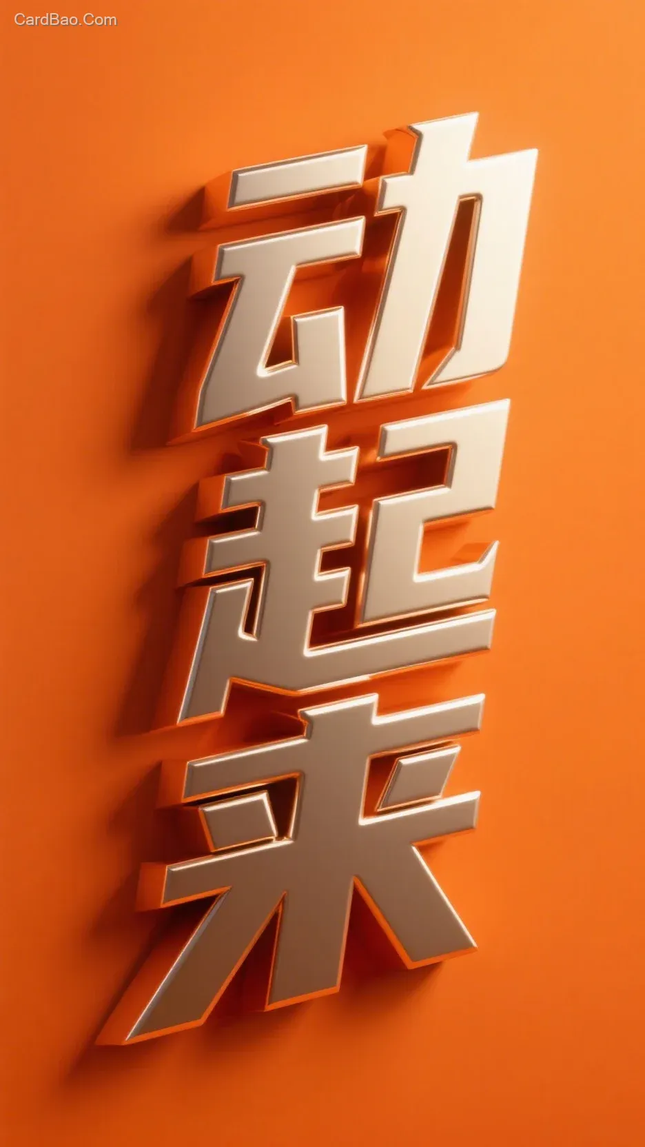 把“动起来”做一个字体设计,背景为纯橙色,画面有震撼感,字体有立体感