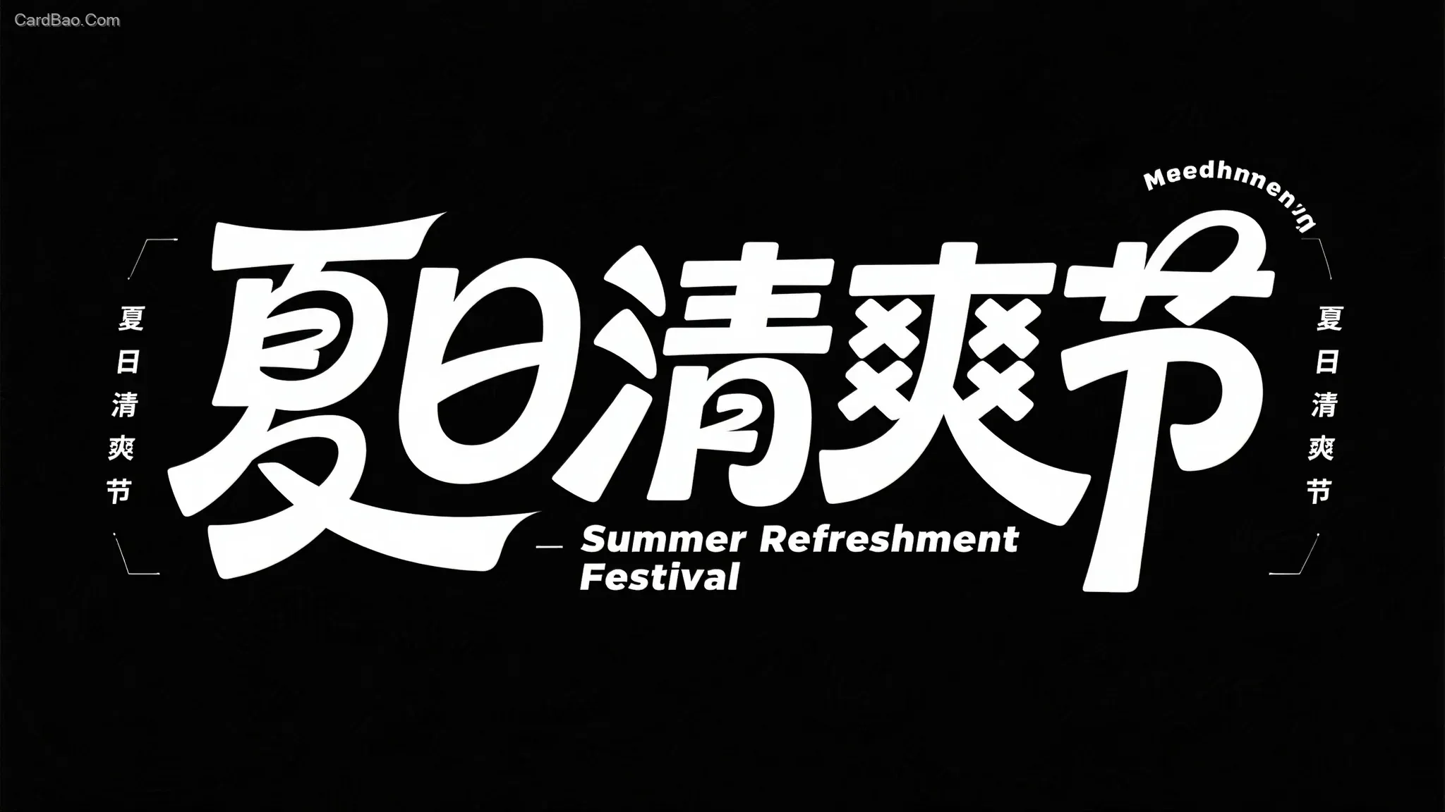 黑色背景,白色字,创意字体设计,流畅且富有艺术感,中文"夏日清爽节",设计灵感:将字体进行抽象变形,给人以强烈的视觉冲击。高级感,扁平化,大师作品,搭配英文“Summer Refreshment Festival”进行排版。整体有夏日的清爽感,嗨翻夏日。