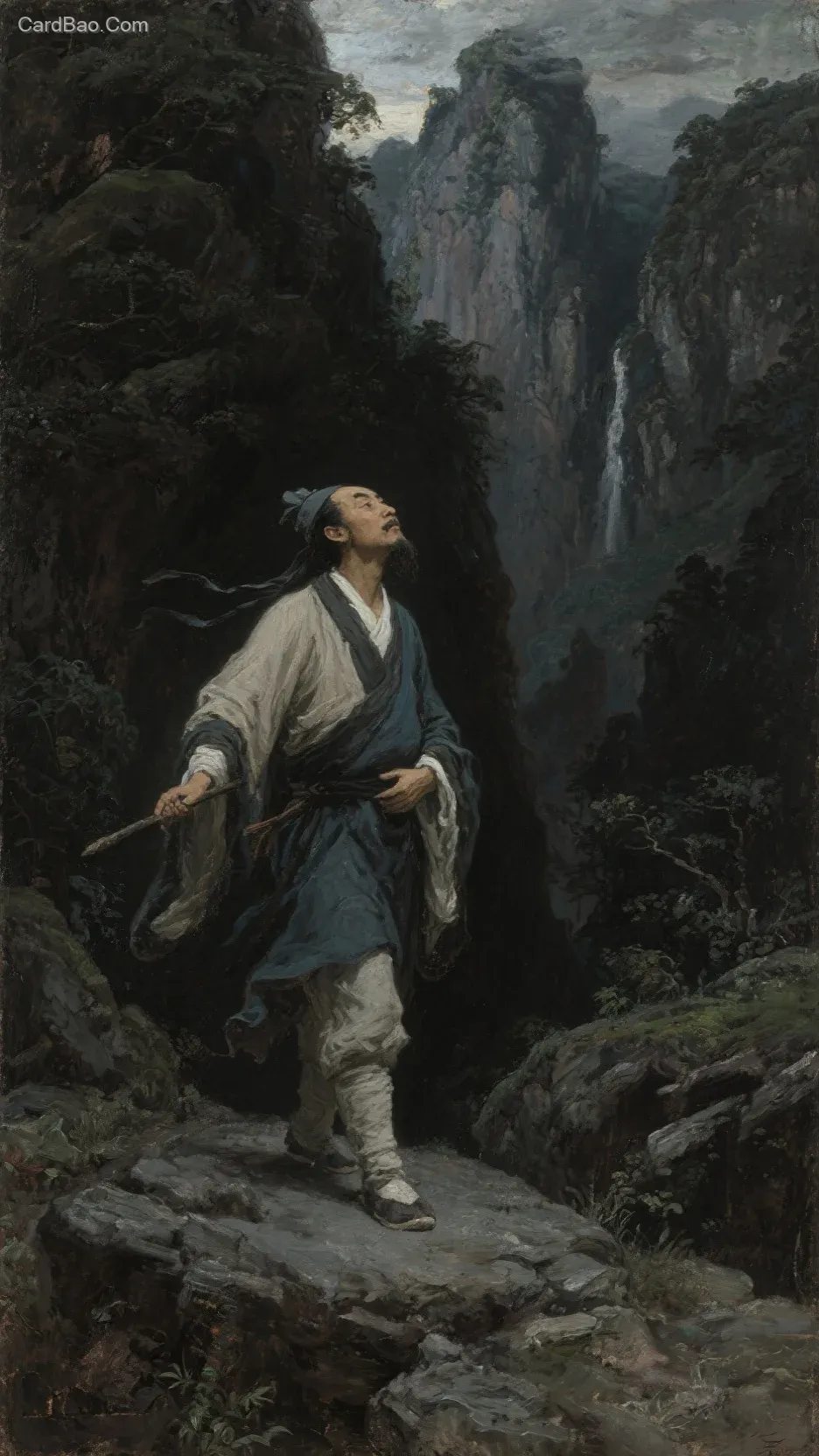 "Xu Xiake's Travels, Dark Realistic Oil Painting Style"