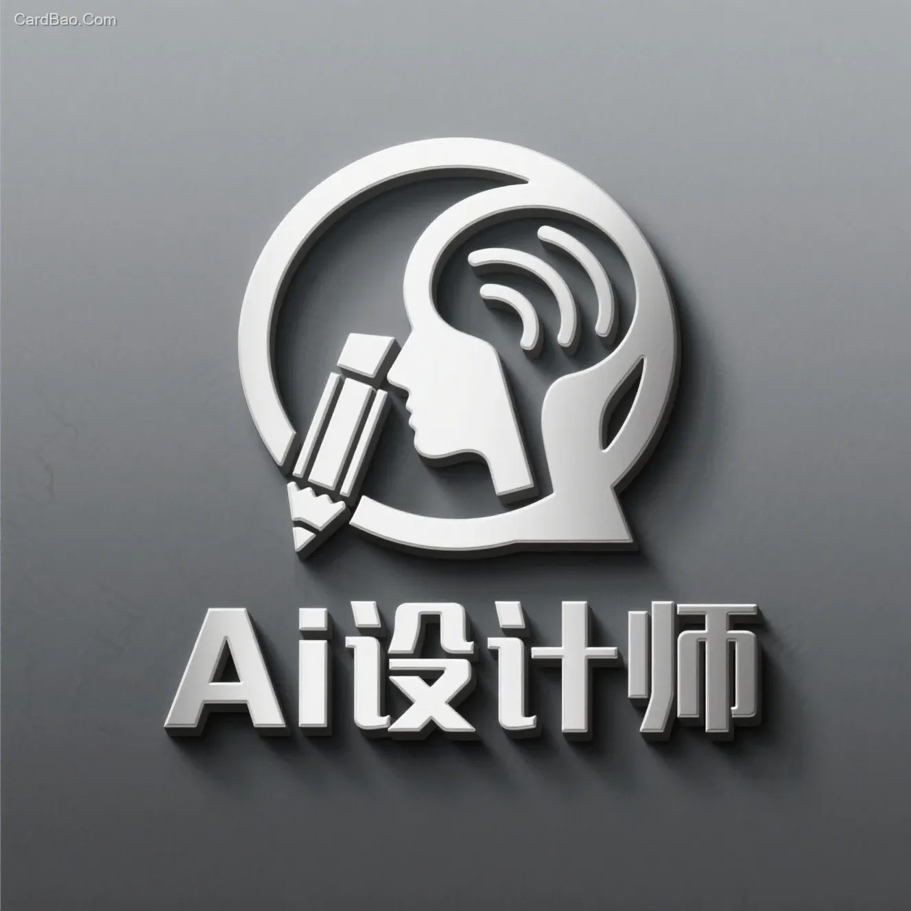 logo品牌标志,极简,图型设计,写着“Ai设计师”,思考和画笔的融合,国际化,高级感,浮雕感,设计感