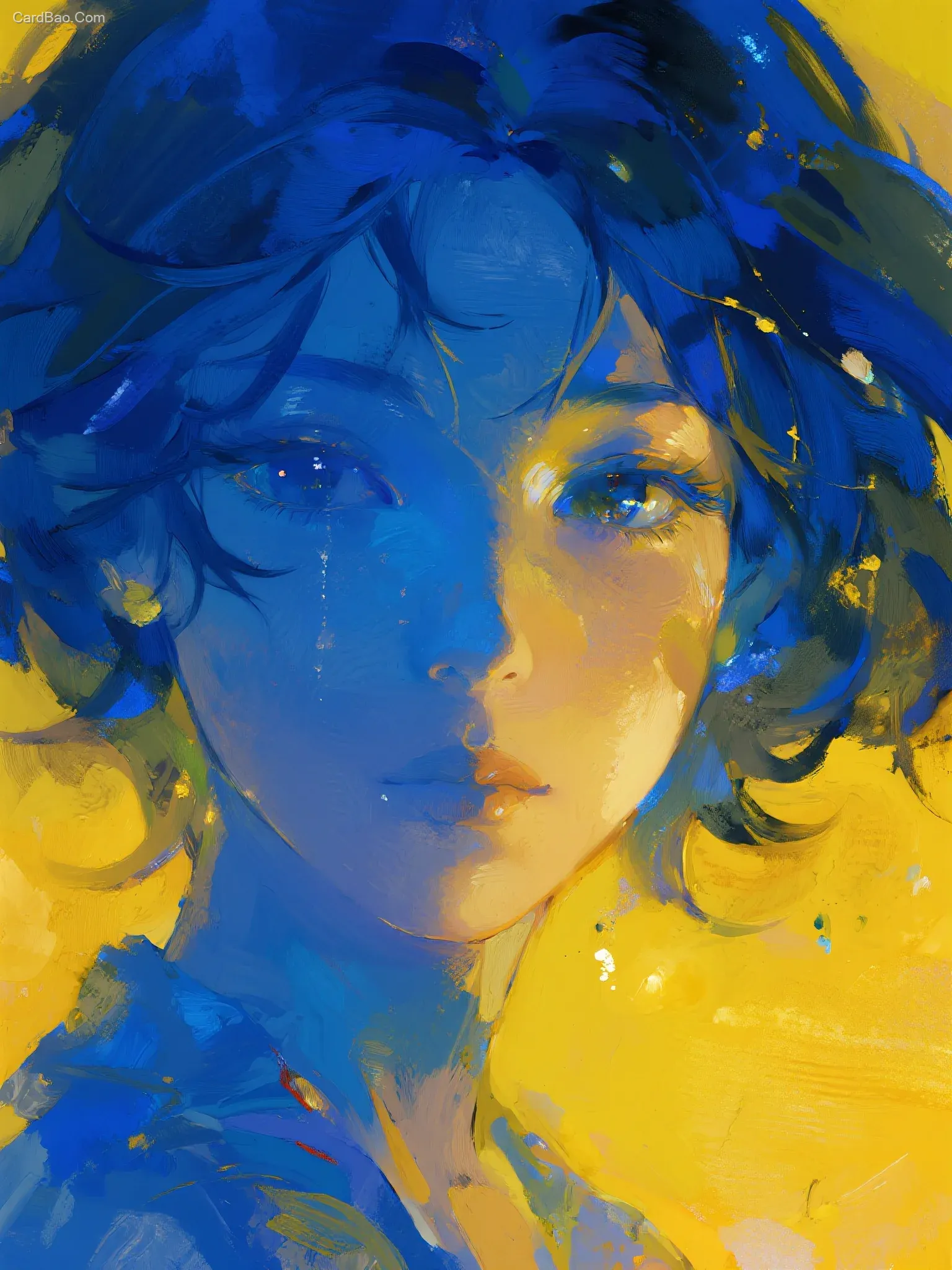 丙烯,超越时代,虚实反复穿插,非传统构图的艺术,耀变,笔触感,少边界感,高饱和度,加强颜料的涂抹感+肌理感,手绘感,艺术,梦幻黄光,蓝调时刻,人像插画,肌理感,超现实主义美学,极简,画面冷暖强烈对比,反射,模糊感+颗粒感+肌理感,高级的氛围感,3D的立体感,微光,光影的弥散渐变,复古